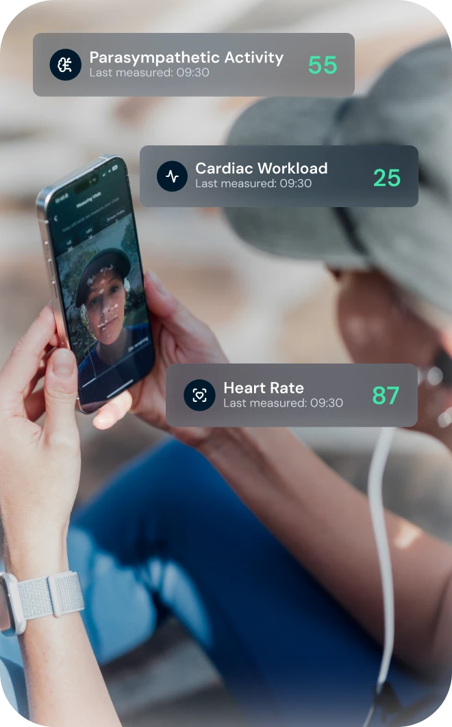 Our whole-person approach combines a premium stimulator, health metrics face scan technology, real-time biofeedback, and expert human guidance to make nervous system balance as automatic as brushing your teeth.